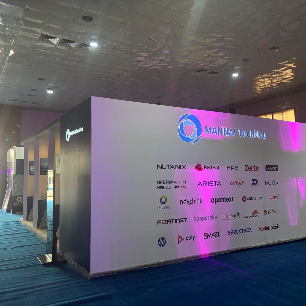 A total of 48 square meters of exhibition space was conceptualized, designed, coordinated, and fully executed by We Make Events W.L.L. team, encompassing booth construction-management, on-site management, and multimedia production. The project also included the development of video content and marketing collaterals for various co-exhibitors participating under the Mannai TechHub umbrella.